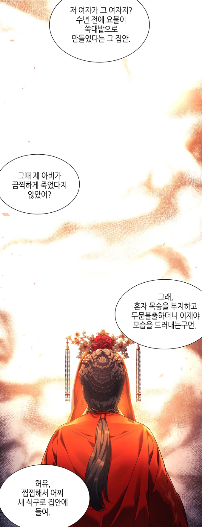 혼롓날 급작스럽게 들이닥친 요물로 인해 정인을 잃고 납치당해 능욕을 당한 예화. 그녀는 자신에게 집착하는 요물에게 벗어나기 위해 자결을 시도한다. 그러나 다시 눈을 뜬 그녀는 10년 전으