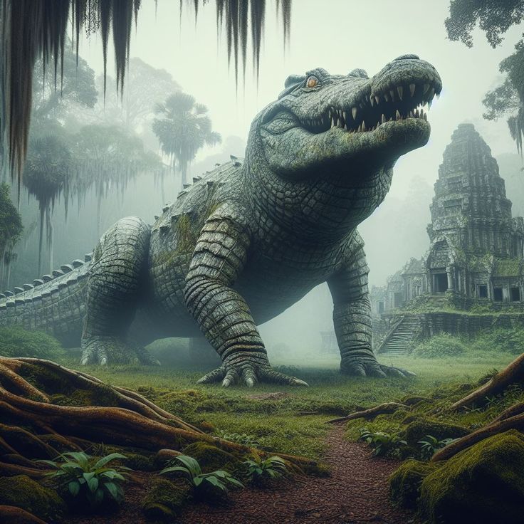 또한, 몸길이가 '10m'에 달한다는 점은 백악의 압도적인 크기를 강조합니다. 10m는 대형 버스 두 대를 이어 붙인 것과 맞먹는 길이에 해당합니다. 이러한 거대한 몸집은 백악이 가진 물리적인 파괴력과 위협적인 힘을 시각적으로 상상하게 만듭니다. 거대한 턱과 날카로운 이빨, 강력한 꼬리 등 악어의 기본적인 특징들이 10m라는 크기와 결합하여, 백악이 인간을 손쉽게 제압하고 삼킬 수 있는 공포스러운 존재임을 명확하게 보여줍니다.
