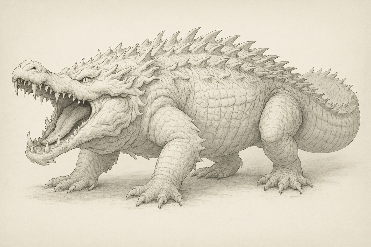 백악은 일반적인 악어와 동일한 형태를 지니고 있지만, 그 색깔이 '흰색'이라는 점이 가장 큰 특징입니다. 자연계에서 흰색 악어는 매우 희귀하며, 이는 백악이 단순한 동물이 아니라 신비롭거나 변이된 존재임을 암시합니다. 흰색은 때로는 신성함이나 순수함을 상징하기도 하지만, 백악의 경우에는 오히려 비정상적인 존재감과 불길함을 더하는 요소로 작용합니다. 거대한 몸집과 흰색 피부의 대비는 백악을 더욱 기이하고 압도적인 존재로 보이게 합니다.