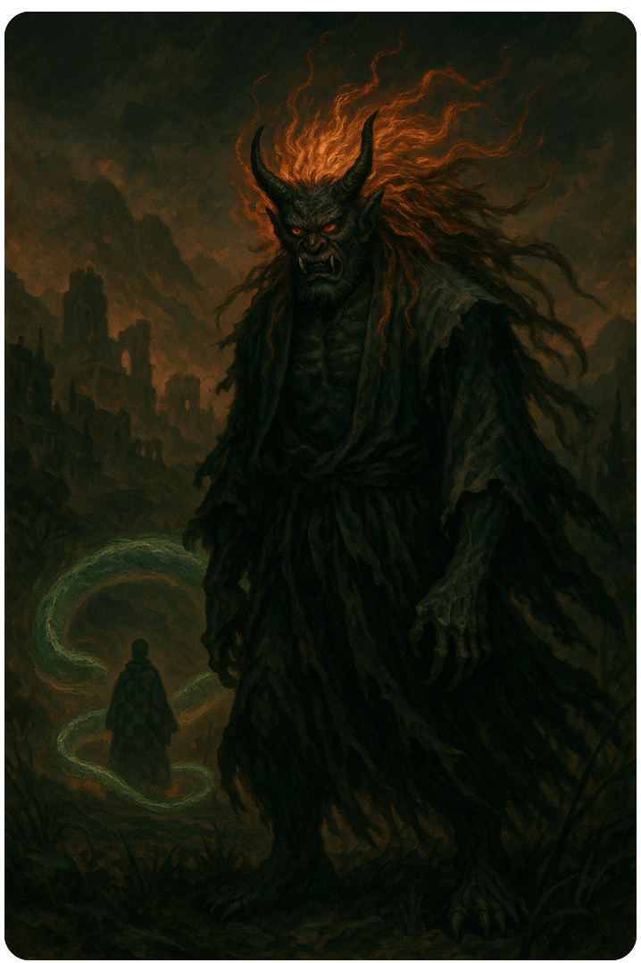 두억시니는 외형뿐 아니라 그 성격에 있어서도 상징적 의미가 매우 큽니다. 민속적으로 보았을 때, 두억시니는 단순한 도깨비류의 요괴가 아니라, 인간이 감당할 수 없는 초월적 존재이자, 때로는 자연재해, 역병, 전쟁, 폭력 등 설명 불가능한 재앙 그 자체를 형상화한 존재로 간주됩니다.