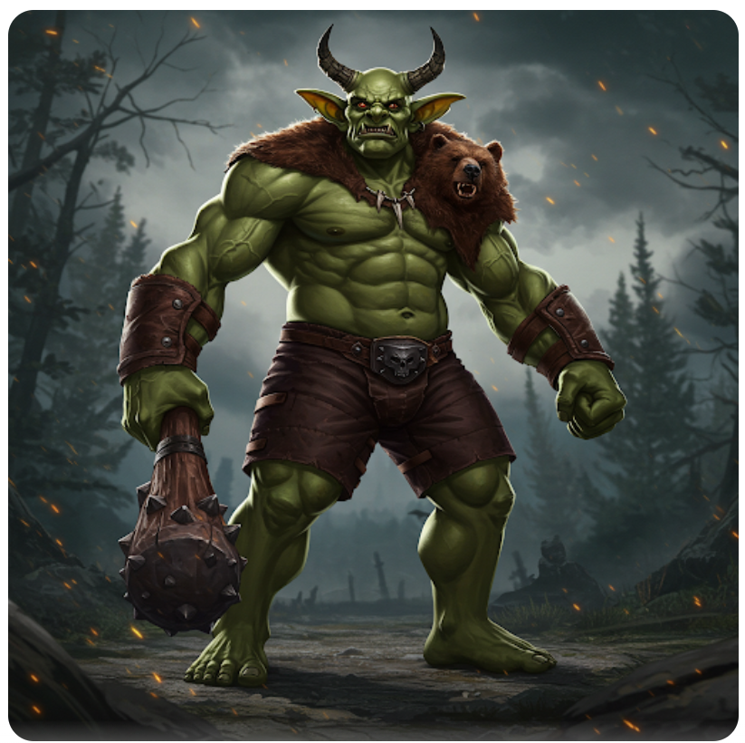 대부분의 두억시니는 헝클어진 머리와 함께 누더기 옷을 입거나, 검은 천으로 온몸을 두른 모습으로 묘사됩니다. 때로는 무기 없이 맨손으로 공격하지만, 일부 전승에서는 커다란 몽둥이나 도끼를 사용하는 야만적인 전투 방식도 보입니다. 이는 문명과 대비되는 야성, 혼돈의 상징으로서 두억시니가 묘사된다는 점을 나타냅니다.