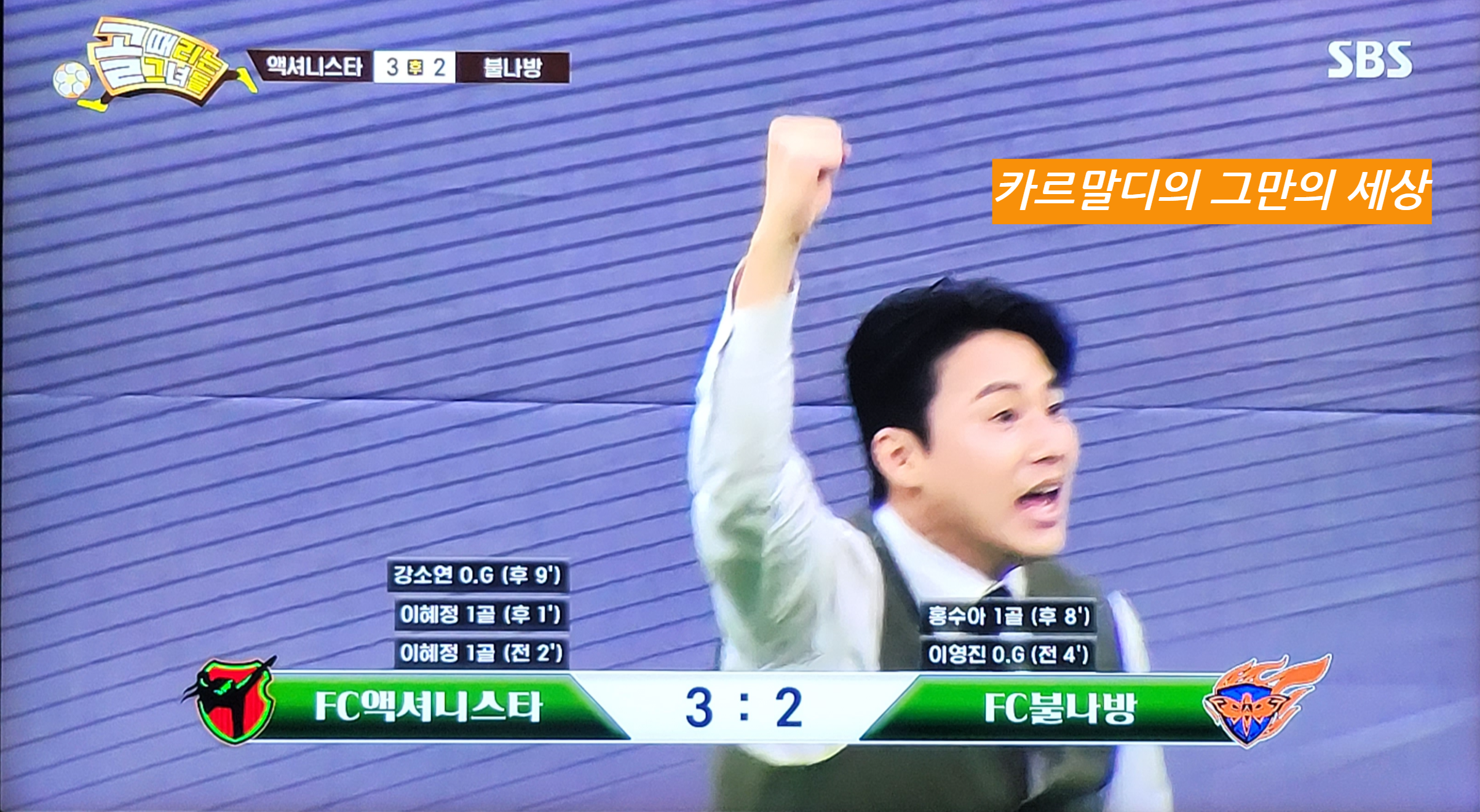 액셔니스타의 이혜정의 또 한번의 골맛을 보여주는 상황이었습니다.