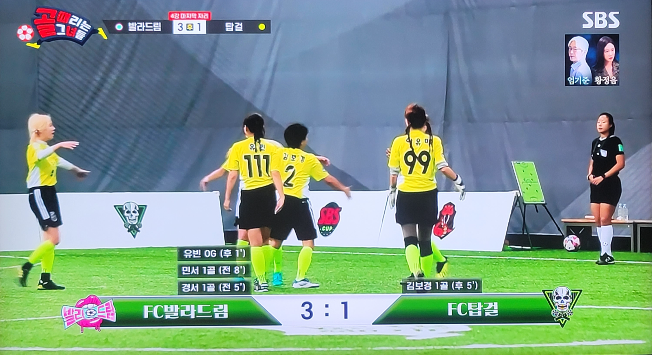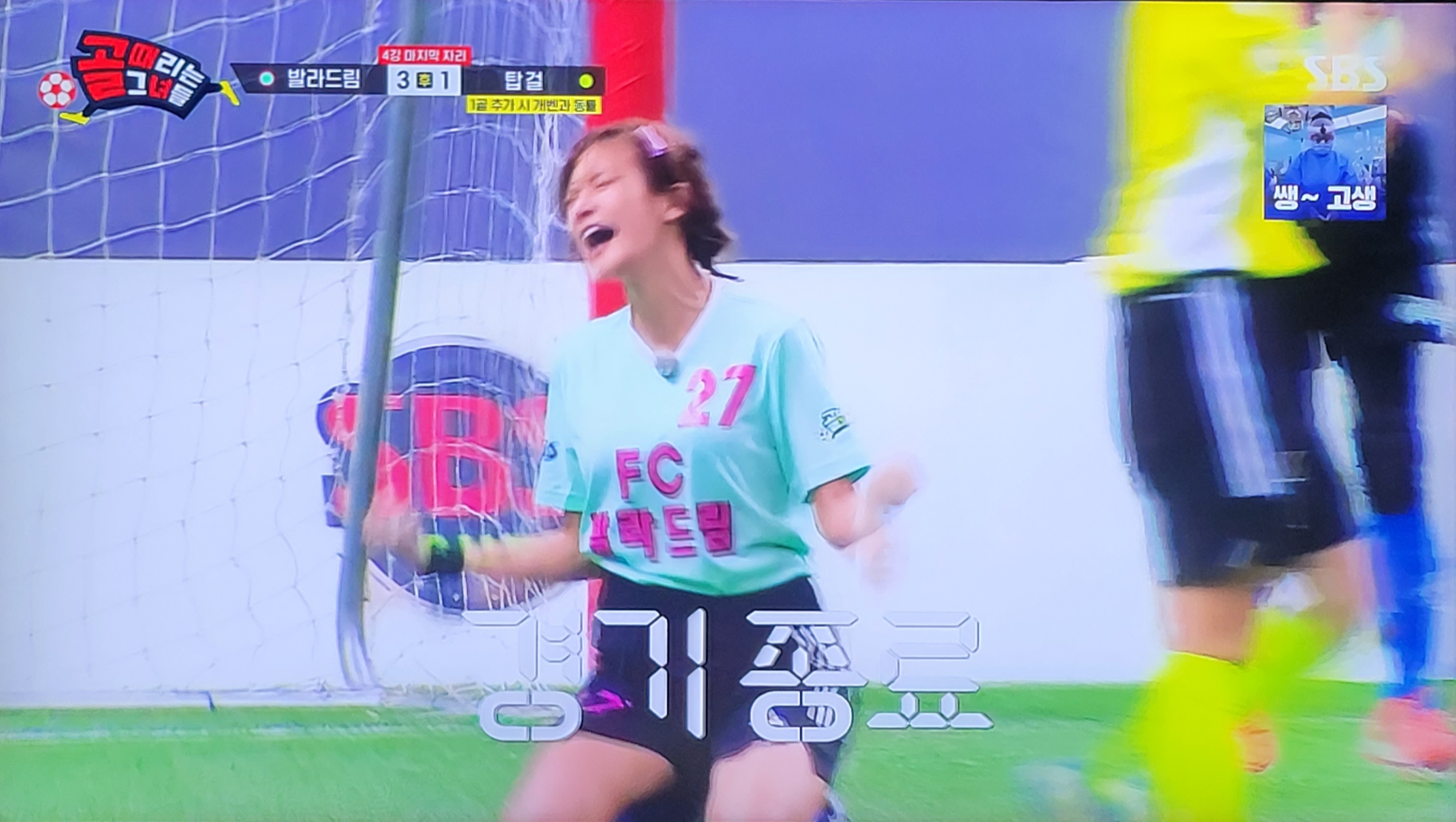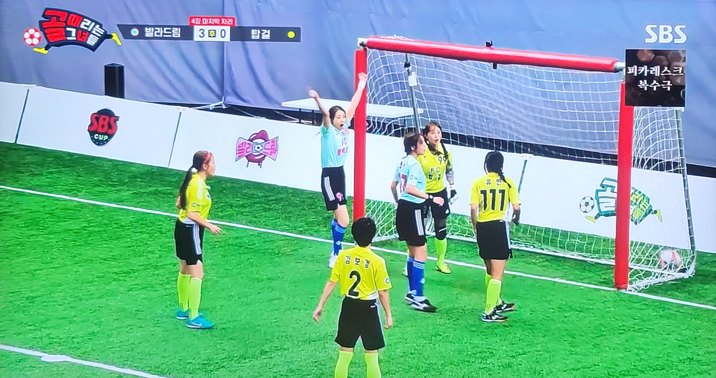 골은 그대로 유빈의 발목에 맞고 그대로 골대 안으로