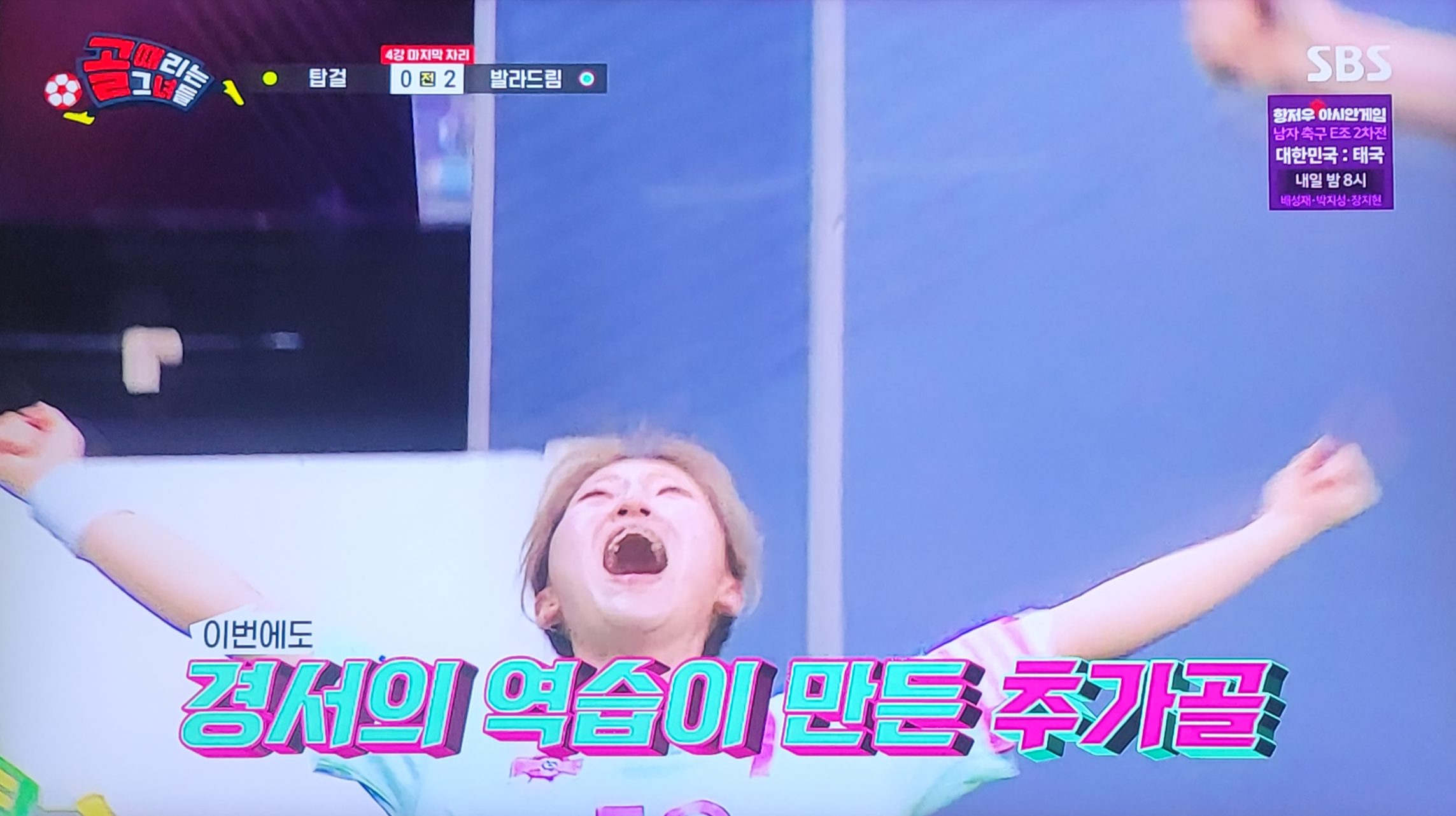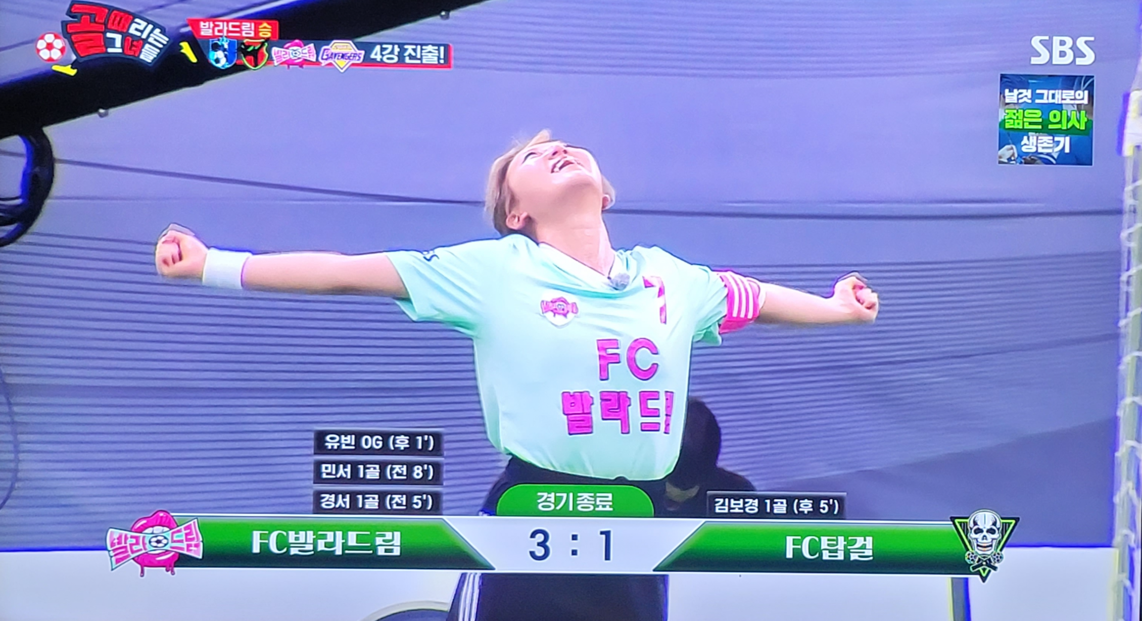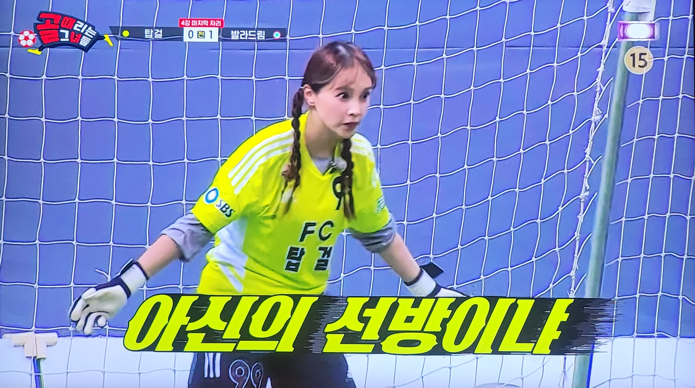 골은 그대로 유빈의 발목에 맞고 그대로 골대 안으로