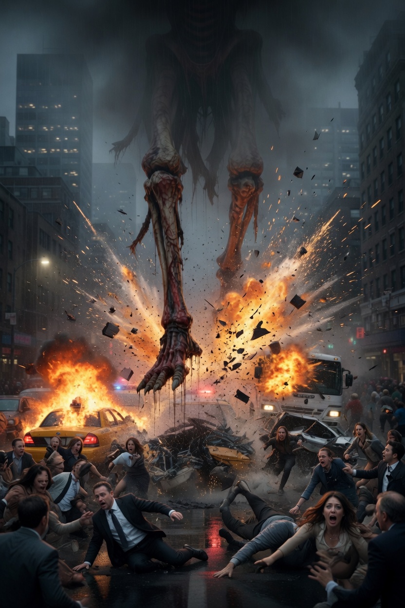 “괴물 등장 → 사람들 발견하고 도망 → 착지 폭발 → 대혼란” 흐름이 자연스럽게 이어질 거예요.CapCut에서 사용할 때 추천 순서: