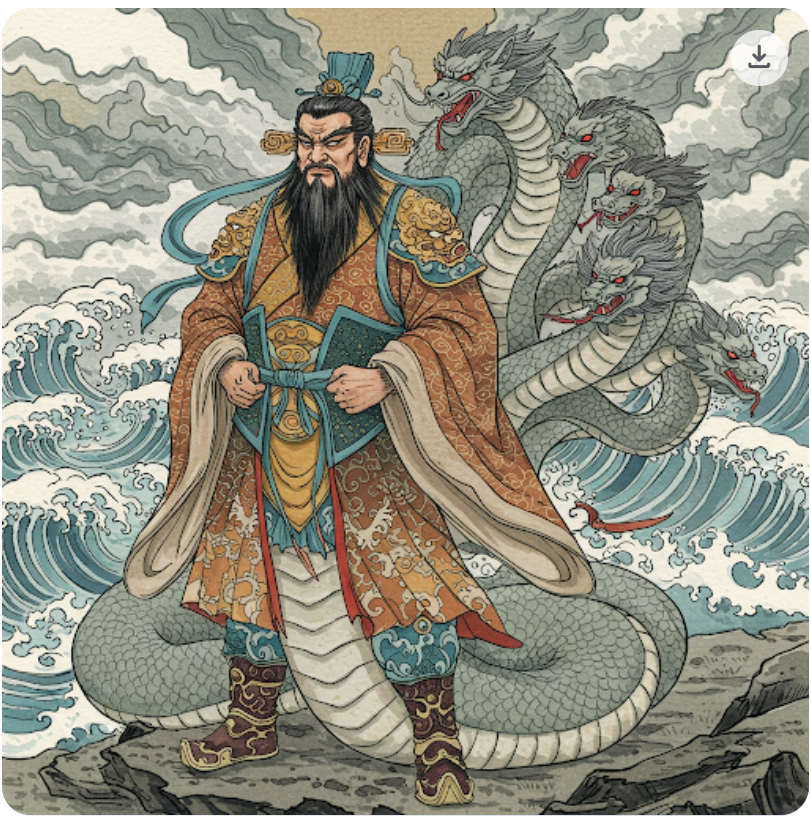 네, 맞습니다. 중국 신화에 등장하는 물의 신 공공(共工)은 독특한 외형과 강력한 힘을 가진 신입니다.