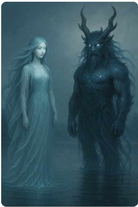 여수령은 단순한 요괴를 넘어서, 인간 내면의 순수성과 탐욕 사이를 시험하는 신비로운 물의 정령입니다. 전승 속에서 여수령은 물가에 홀로 선 인간에게 말을 걸고, 그 응답을 통해 상을 주거나 벌을 내리는 존재로 등장합니다. 그가 남긴 물구슬은 힘이면서 동시에 책임이며, 귀수감이라는 징후를 통해 인간에게 경고를 전합니다.