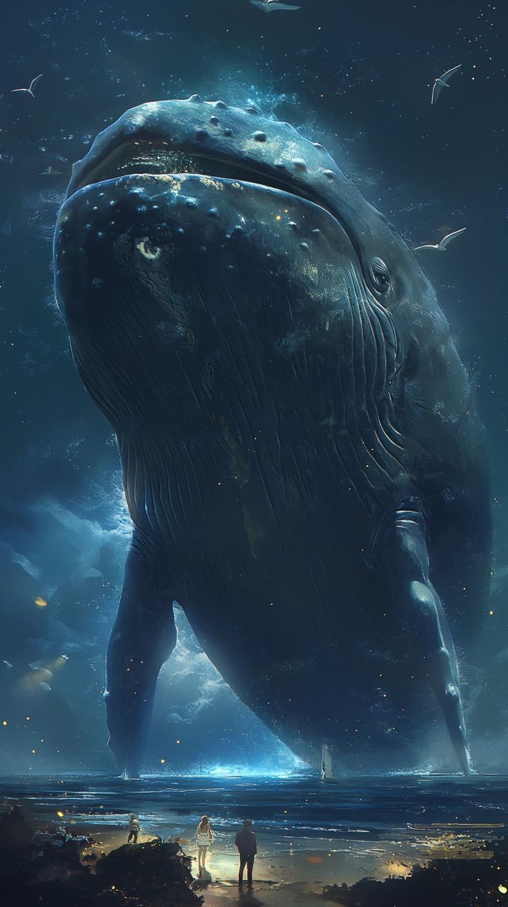 고래의 특징: 고래는 유선형의 거대한 몸집과 강력한 꼬리 지느러미를 가지고 있습니다. 해추가 고래의 모습을 하고 있다면, 바다를 가르며 나아가는 웅장하고 유려한 모습일 것입니다. 그 거대한 몸집 자체가 바다의 파도를 일으키는 원동력이 될 수 있습니다. 이러한 모습은 해추가 바다의 지배자로서의 위용을 드러내는 데 적합합니다.