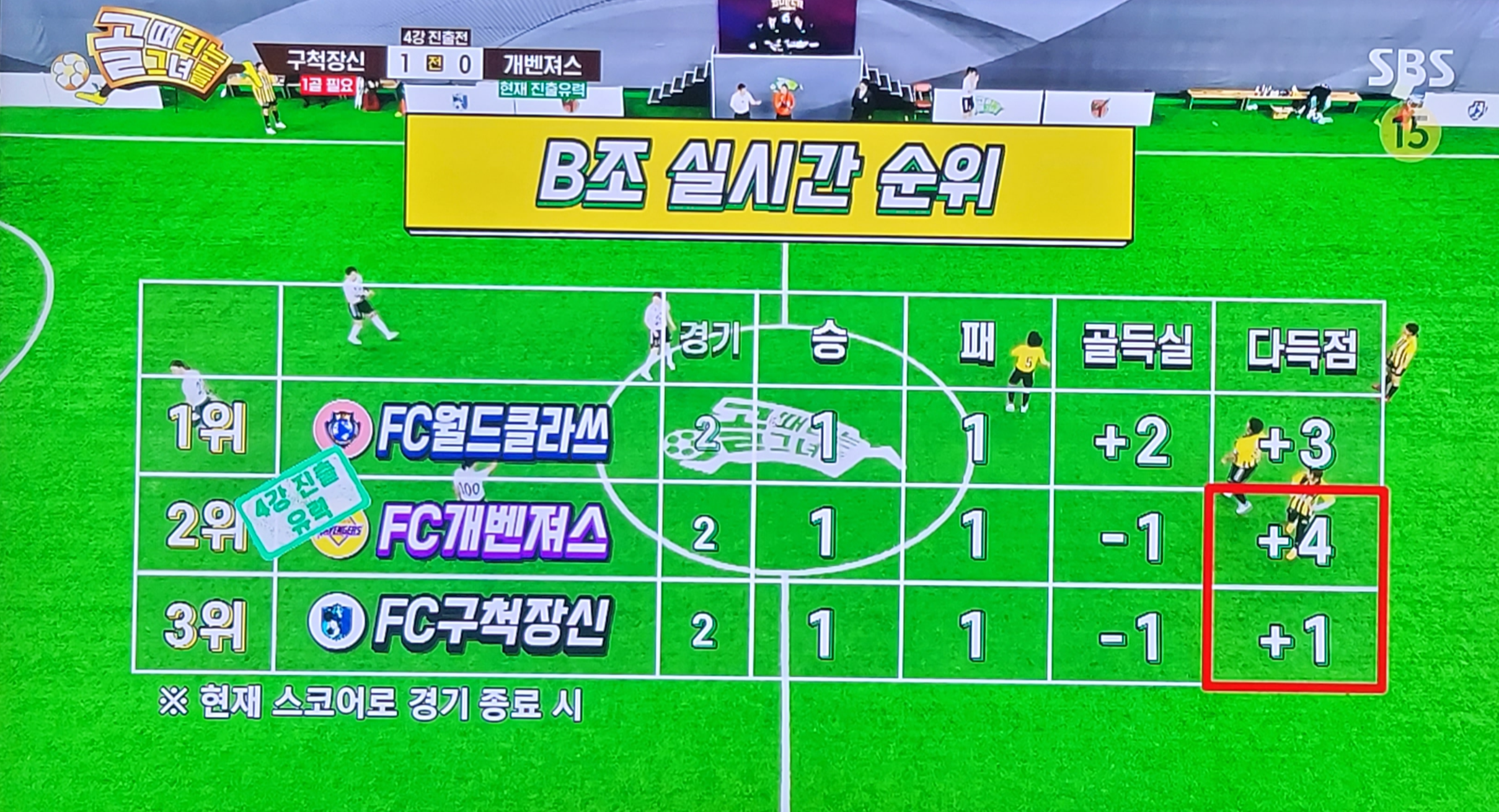 겨우 구척장신은 후반전에 들어와 4강진출이 유력해졌지만..